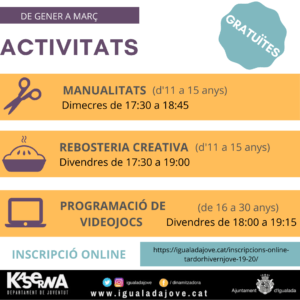 Amb la tornada a l’institut, el final de l’estiu i l’inici de la tardor… arriba la nova PROGRAMACIÓ. Els equipaments juvenils de la ciutat obren les seves portes amb activitats com dibuix manga, cuines del món, acompanyament a l’estudi, teatre, tallers per la cerca de feina… Aquest primer trimestre estarà ple d’activitats, tallers i xerrades […]
